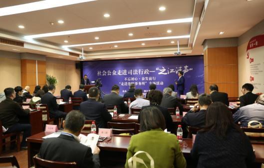 “之江法声”系省司法厅主导开展的系列宣传活动,通过向社会公众展示司法行政各项工作和成就,大力宣传各级司法行政机关围绕党委政府中心工作开展法律服务的生动实践,弘扬新时代司法行政正能量。本次“走进律师事务所”专场活动围绕宣传我省律师在履行法律保障、法治宣传、法律服务等职能中的有效举措、典型经验和特色亮点工作等展开,内容丰富、节奏紧凑,由省律协新闻发布会、浙江律师行业成就图片展、“智仁讲坛”、模拟法庭、法律咨询等环节组成。