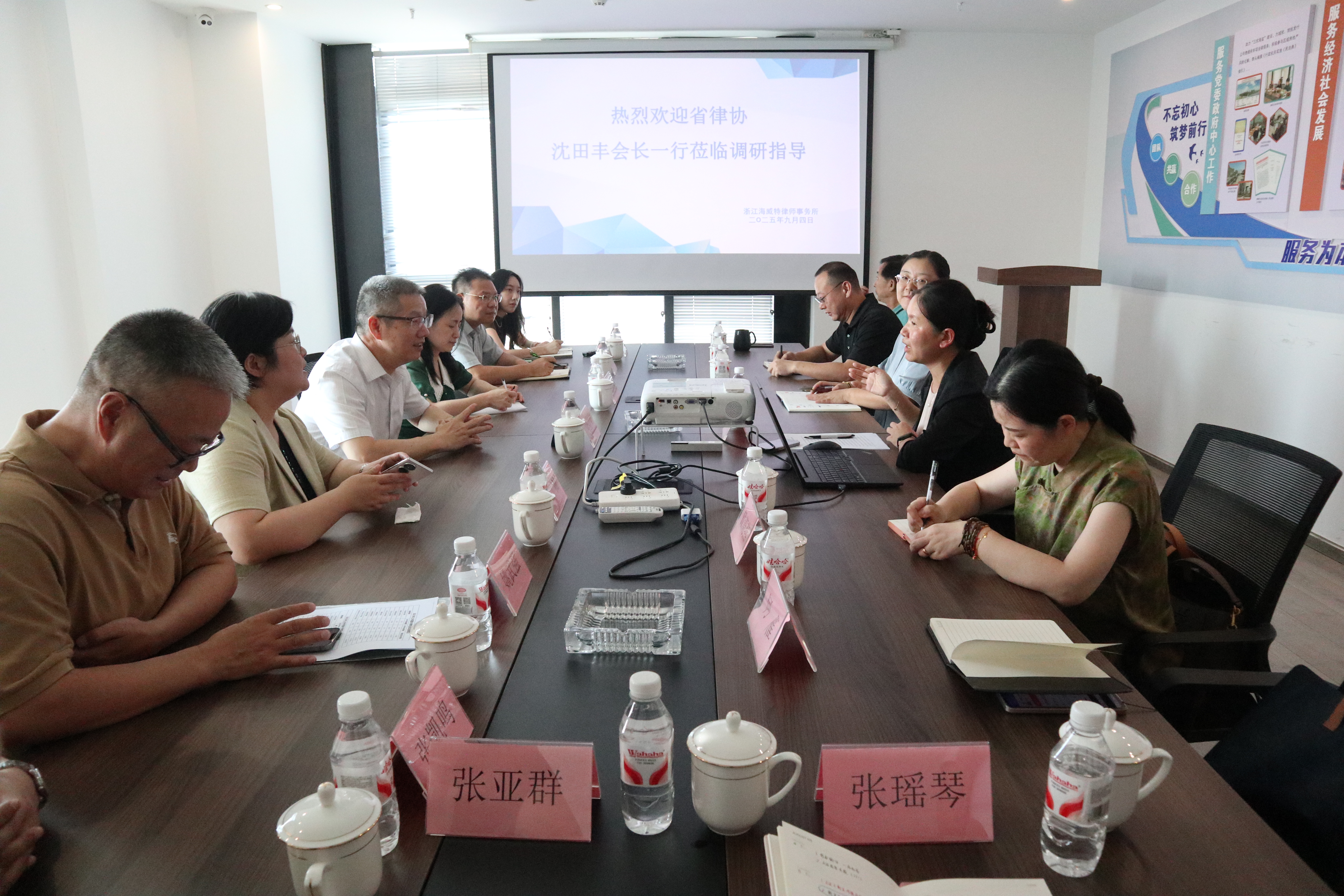 9月5日,省律协会长沈田丰一行赴海盐就当前中小所、县域所发展状况等问题开展调研。省律协秘书长吴引引,常务理事、促进中小所(县域所)发展委员会副主任徐先宝参加调研。